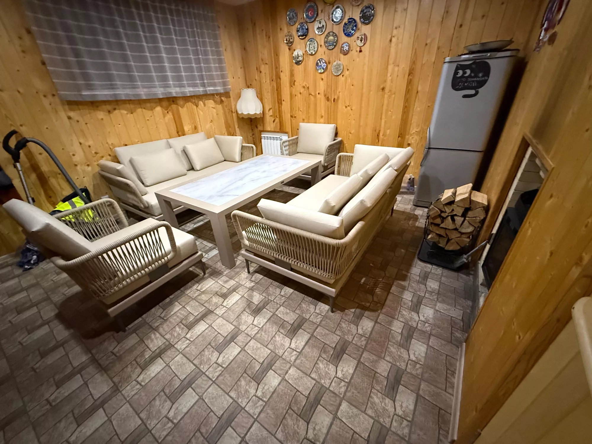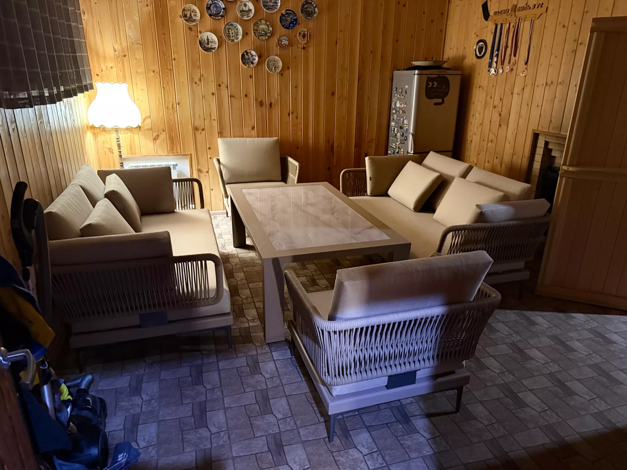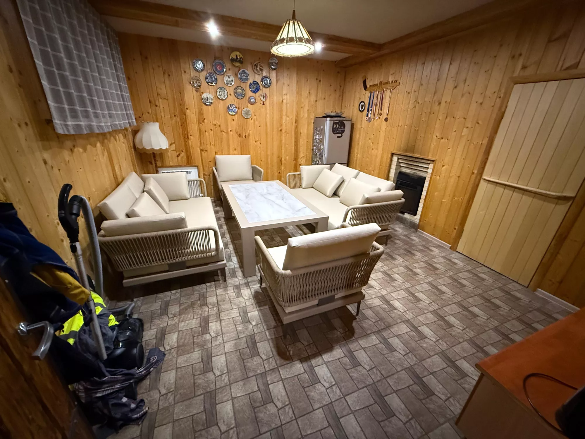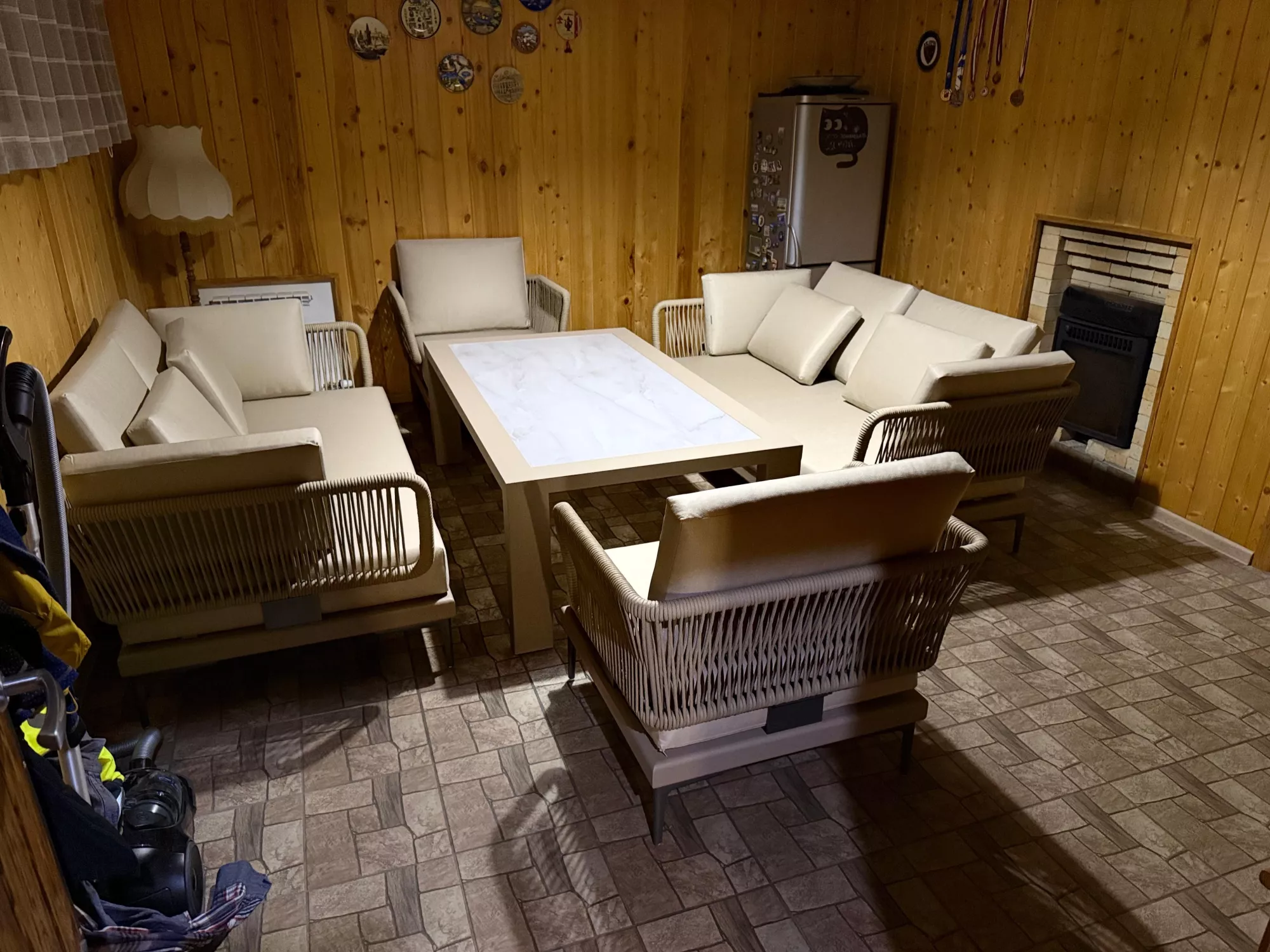 Мебель задействованная в проекте при обустройстве семейной бани: 2 кресла Палермо, двухместные диваны Палермо и обеденный стол Лозанна на 6 персон.