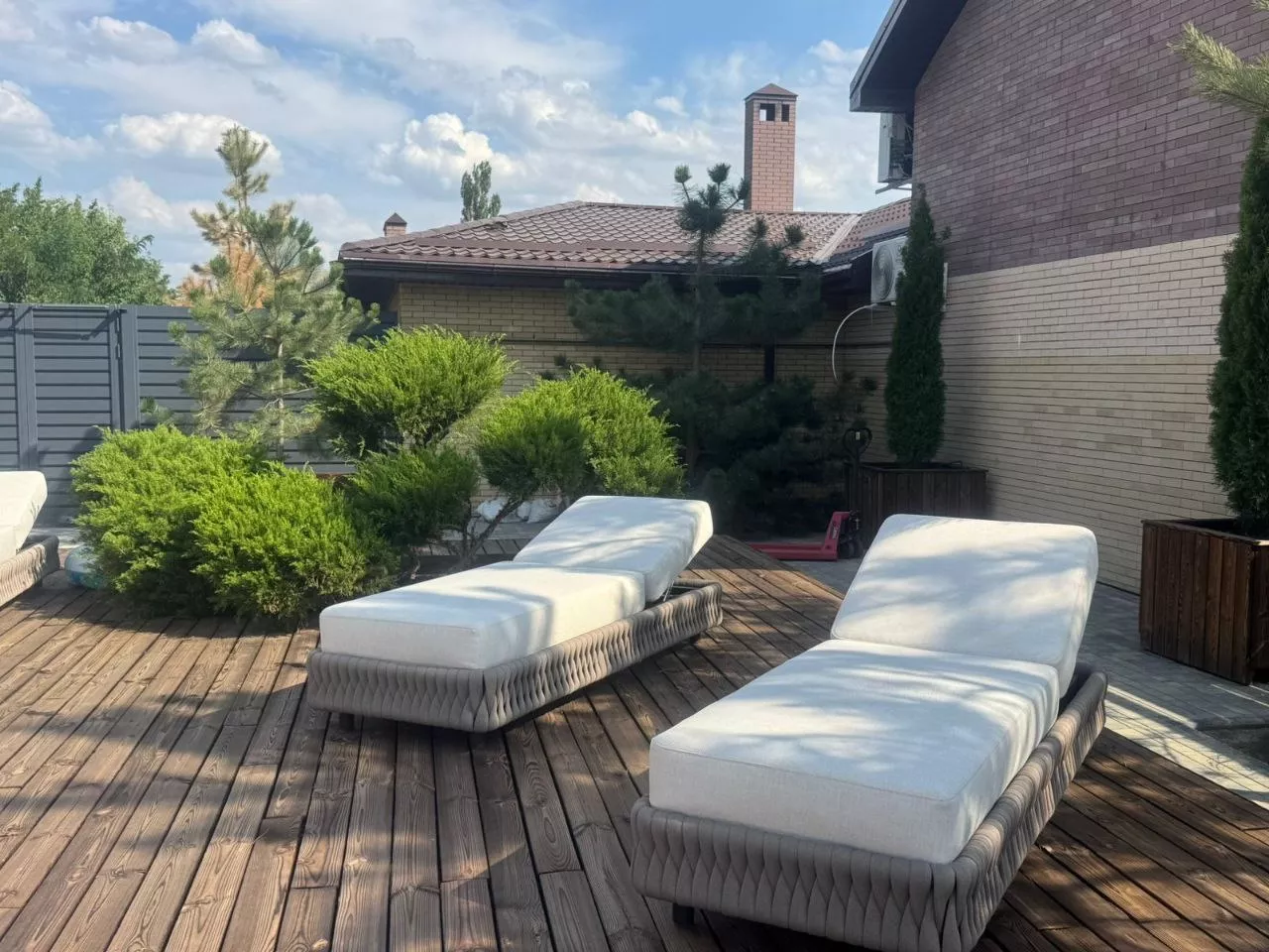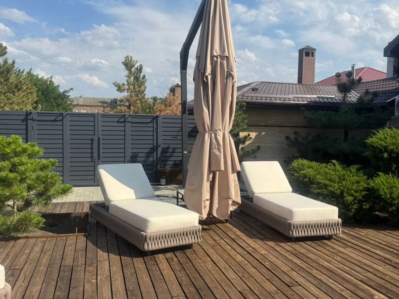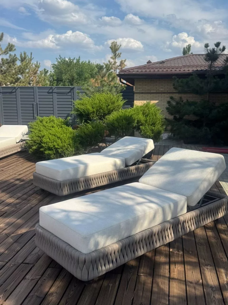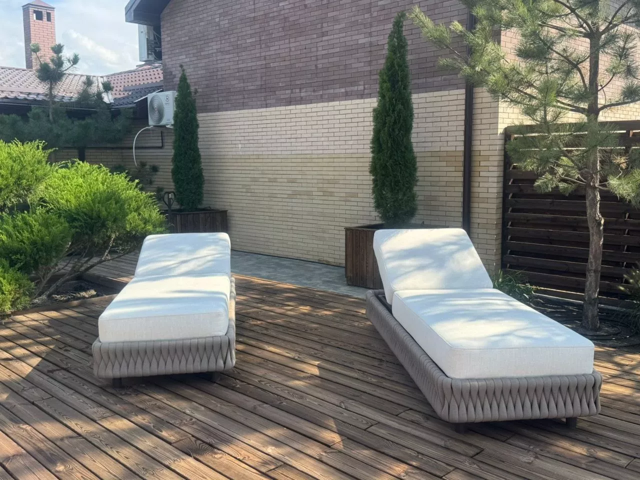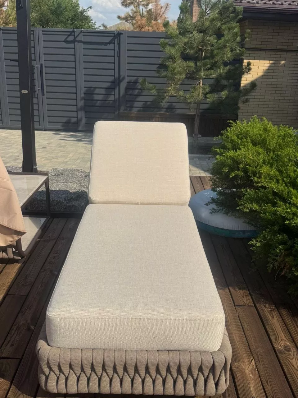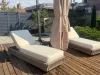 Мебель задействованная в проекте при обустройстве зоны с бассейном: шезлонги Монако и журнальный стол Модена.